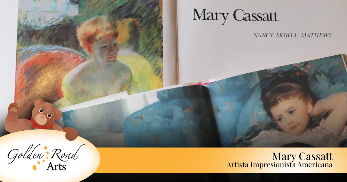 Hay un libro en el que se puede encontrar todas estas piezas de arte que realizó. Y el proceso, es que el artista puede hacer hasta 10 piezas iguales con solo una. Es decir, no tiene que estar pintando y repintando, sino solo graba una sola vez y se reproducen. Lo ponen en una pieza de metal, ahí se diseña, y después se imprime y así toman la imagen original y la pueden hacer o reproducir hasta 10 veces, y se pueden vender de una forma más barata o económica. Y pues se venden más rápido. Este tipo de impresiones fue una forma en que los artistas podían vender su arte -con más fluidez-. Gracias por visitarme en Golden Road Arts.  Espero que hayan disfrutado nuestra charla de Mary Cassatt. Tenemos muchas artistas mujeres. Ella es una de las grandes artistas y espero que la recuerden cada vez que ustedes vean imágenes de su trabajo porque ella dibujó, recuerden, muchos retratos de familias, de hijos y sus mamás.